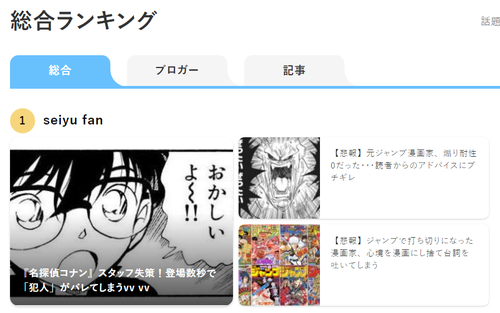 27日 ライブドアブログランキング漫画・アニメで初の1位